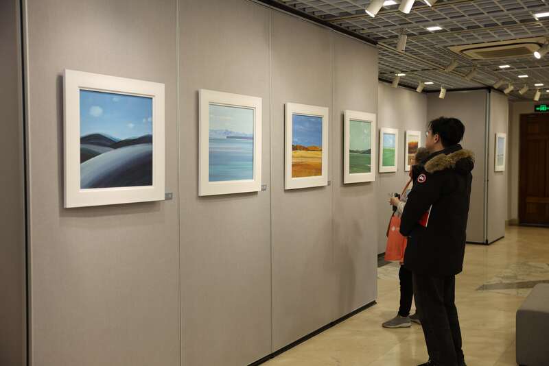 王邦雄作品展以“觀”为主题,展出油画和剪纸作品共100件,每件展品均与一个中国文字巧妙结合起来,给人无限的遐想空间。他的作品在中西交融中始终坚守东方美学内核,重意趣、尚写心、讲境界,所绘风景油画设色雅致,通透灵动,沉静而富有内力。他的剪纸作品在国外创作期间,也受到外国友人的青睐。